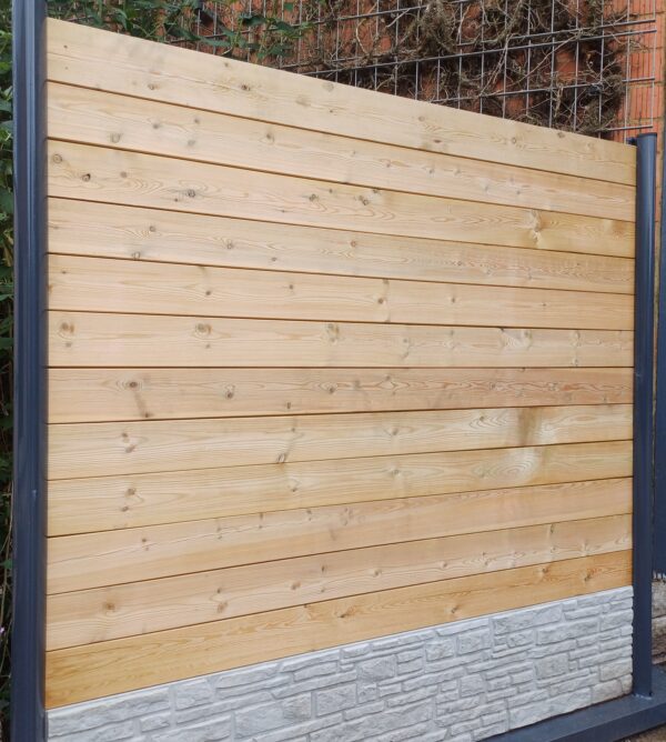 Nous avons étendu notre gamme produit et stockons les palissades à élément en pin blanc du Nord. Ces lames de bois en 34mm vous assurent un esthétique naturel mais avec une touche de béton et acier pour la durabilité !